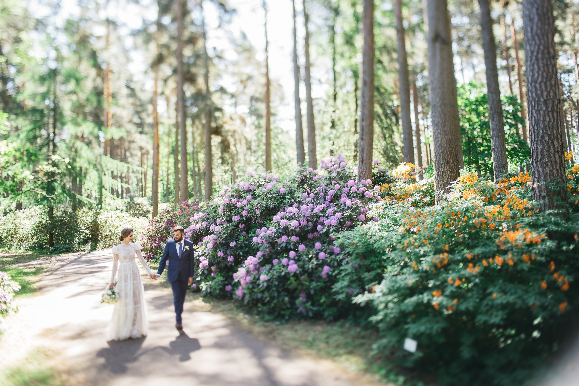 🌿 Pirms došanās uz ceremoniju pāris iemūžināja skaistus kadrus LU Rododendru audzētavā «Babīte» – vienā no skaistākajām kāzu fotosesijas vietām Latvijā.